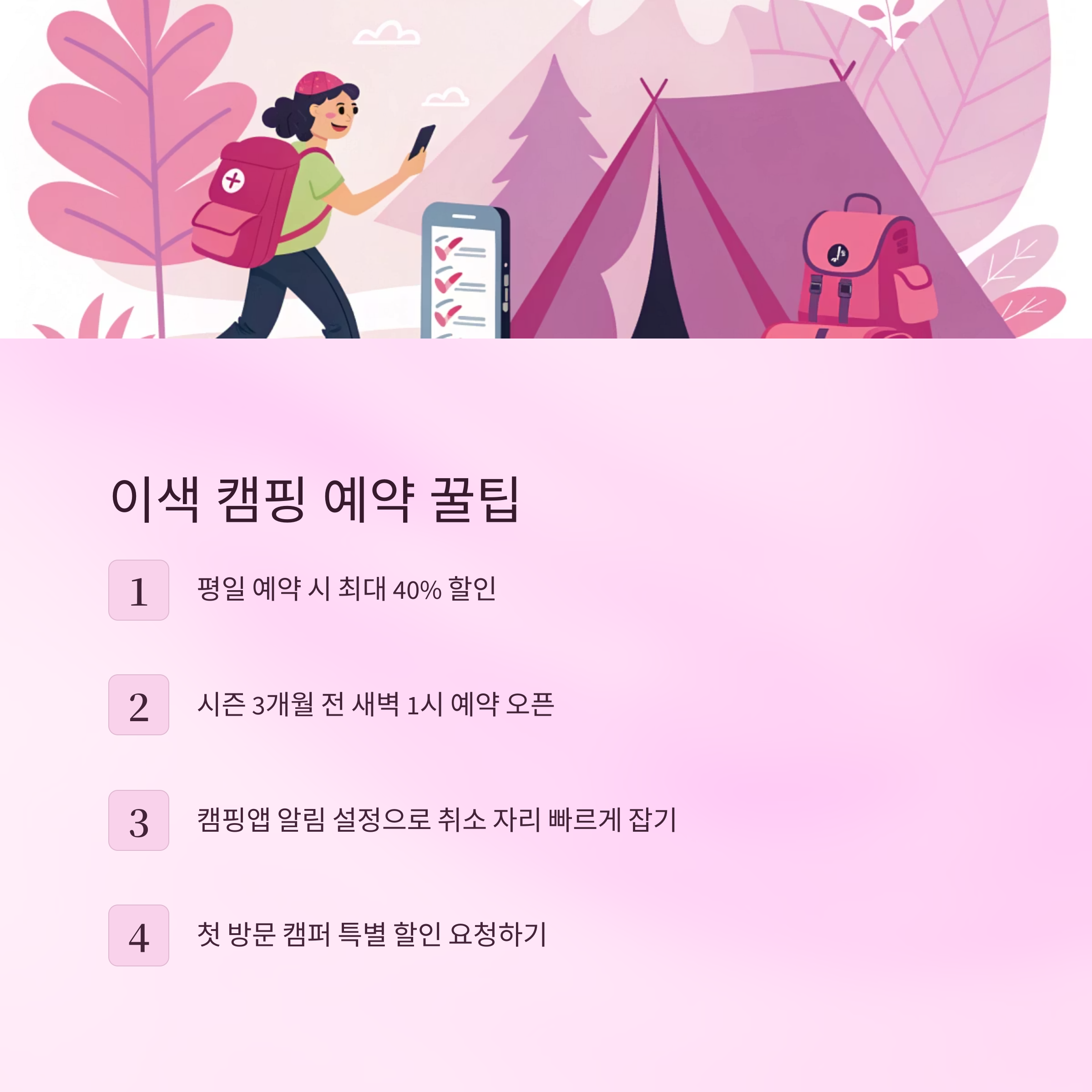 🎒 이색 캠핑 예약 꿀팁 5가지 (시각화 버전)