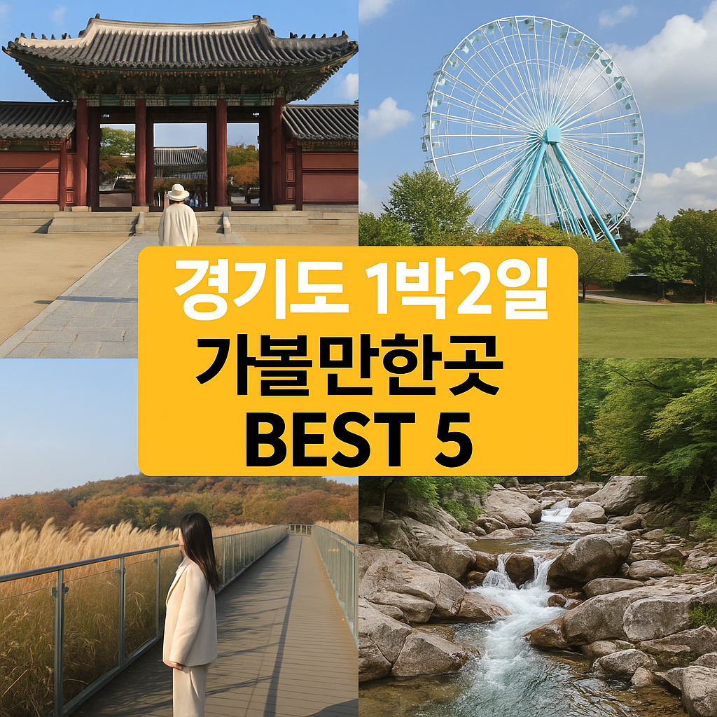 10월은 국내 여행의 황금기입니다. 특히 단풍이 절정을 이루는 가을, 경기도는 짧지만 알찬 1박2일 여행지로 각광받고 있는데요. 오늘은 가족과 연인, 누구와 함께 가도 좋은 ‘경기도 1박2일 여행지 BEST 5’를 소개해 드릴게요. 자연, 감성, 힐링 모두 챙길 수 있는 스폿으로만 골랐으니 끝까지 집중해서 살펴보세요!